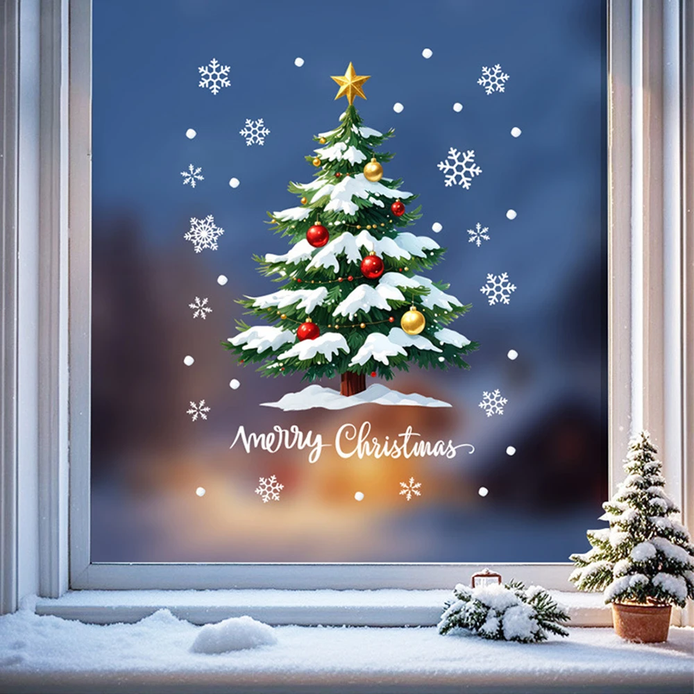 1/2pcs Christmas Window Stickers Reusable Window Decoration Supplies Christmas Tree Snowman Snowflake Glass Decorations Tools