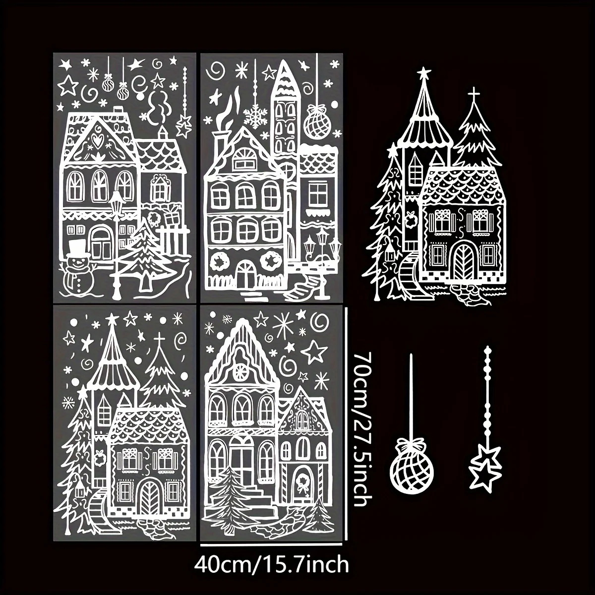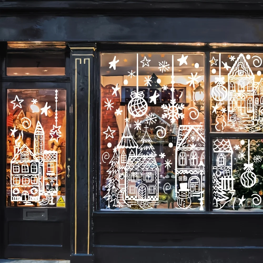 4 sheets/set Large Christmas Window Clings - Snowman & Snowflake Decals for Festive Glass Decoration,Snowy house wall stickers