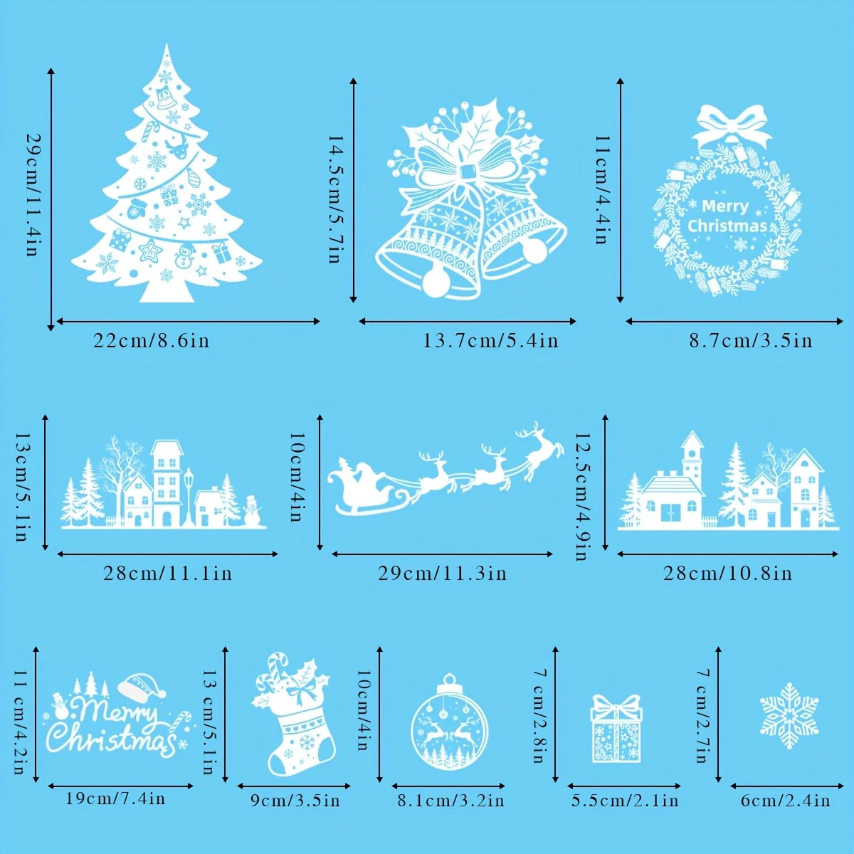 9 sheets Christmas Static Window Stickers, Seamless and Easy to - Snowflake Theme "Merry Christmas" Letters - Christmas Tree