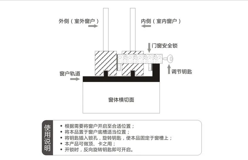 • Note: When turning the key, the force should not be excessive, so as not to cause the sash (window track) deformation damage