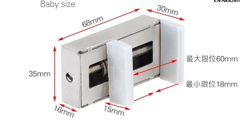 • The maximum adjustable distance of the safety lock moving baffle is about: 60mm; the minimum distance is about: 17mm
